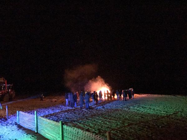 Selbst im März ist in Dahme für naturverbundene Gäste etwas los. Das traditionelle Strandfeuer zur Vertreibung der Wintergeister. Auch alkoholische Getränke wurden zur Unterstützung dieses Vorhabens ausnahmsweise mit eingebunden.