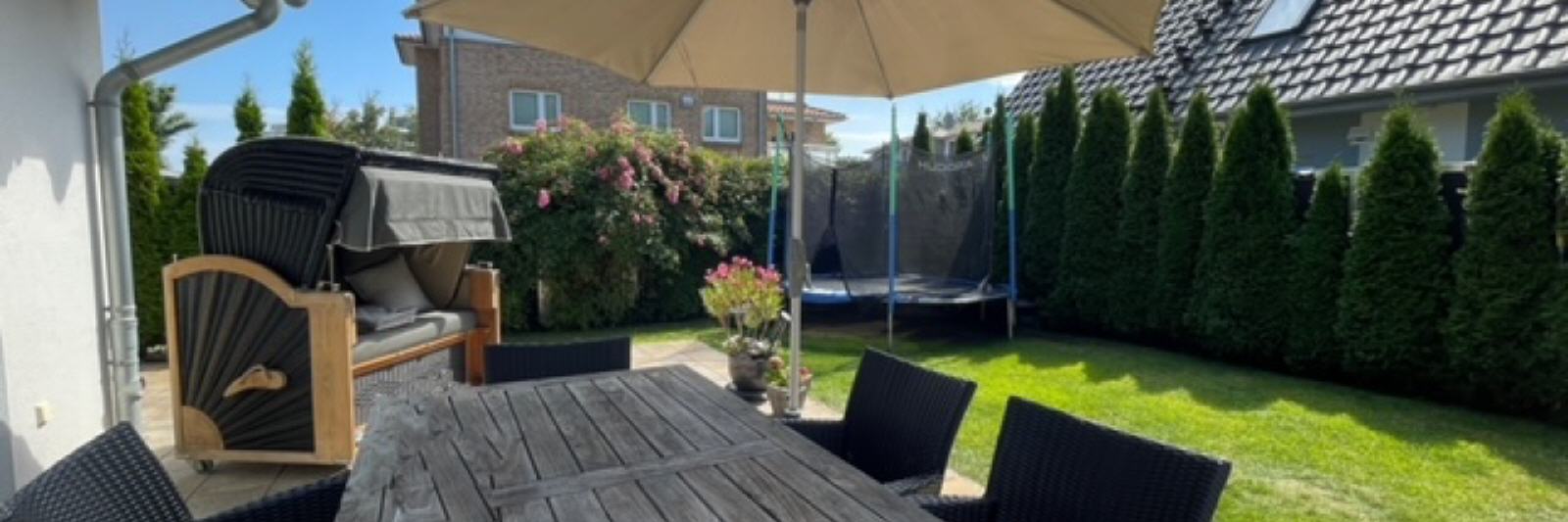 Der Garten rund ums Haus ist umzäunt und teilweise mit hochwertigen Sichtschutzzäunen gegen Einblicke von Außen geschützt.