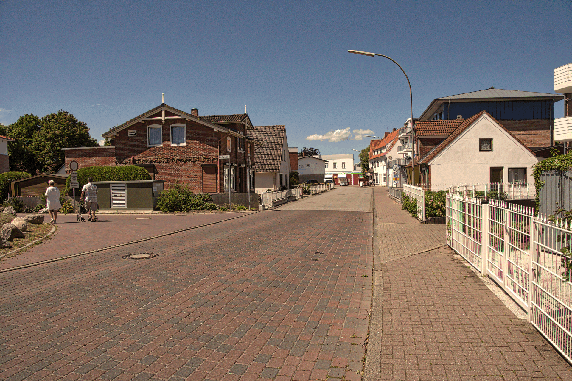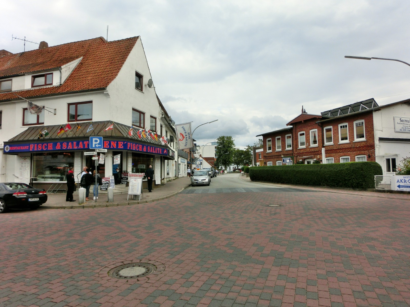 Seestraße vom PUCK-Supermarkt aus gesehen. Hinter dem letzten Haus rechts ist die Einfahrt Am Kurpark.